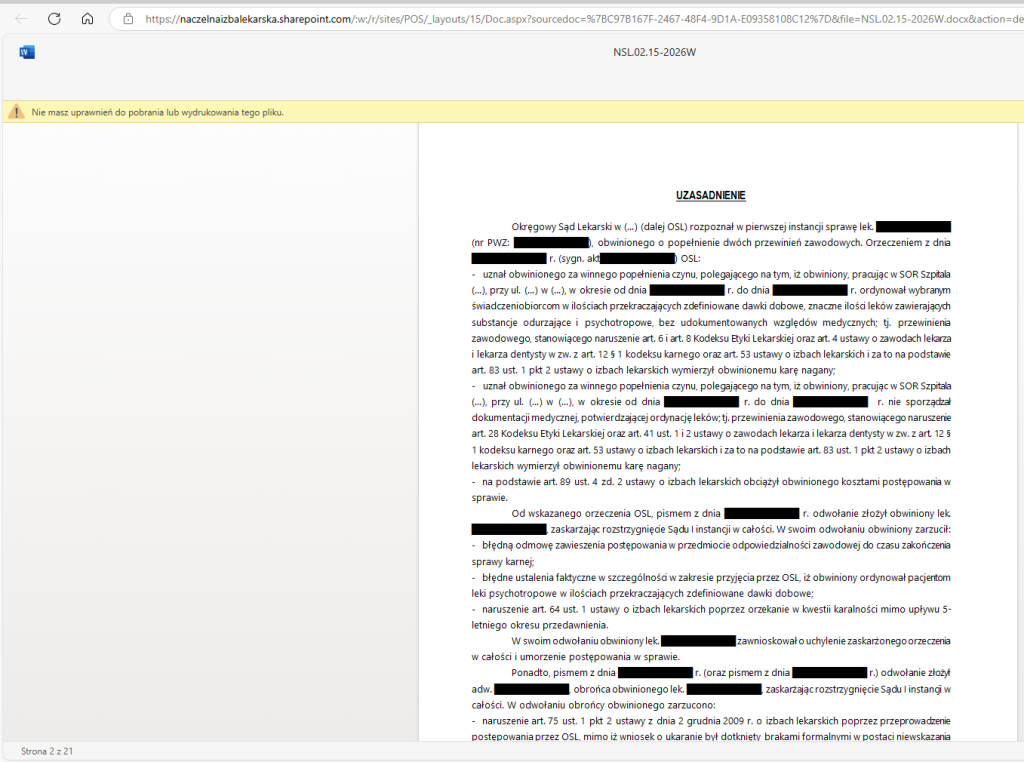 Portal Orzeczeń Sądów Lekarskich- wypaczona idea w wykonaniu NRL