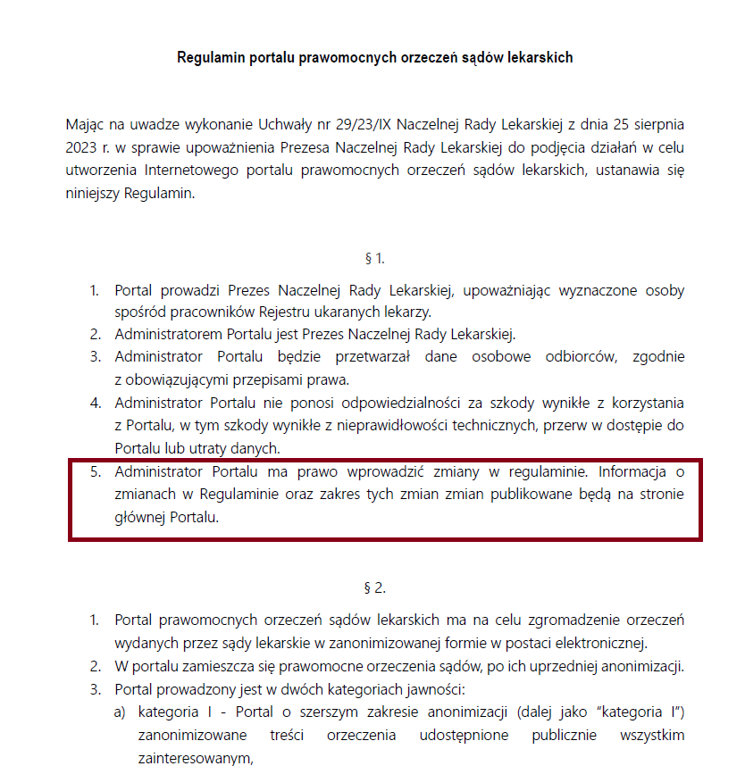 To jest Uchwała Naczelnej Rady Lekarskiej, a właściwie jej załącznik. To uchwalony w 2024 roku Regulamin Portalu Orzeczeń sądowo-lekarskich. Na jego podstawie działa ów Portal pod adresem internetowym